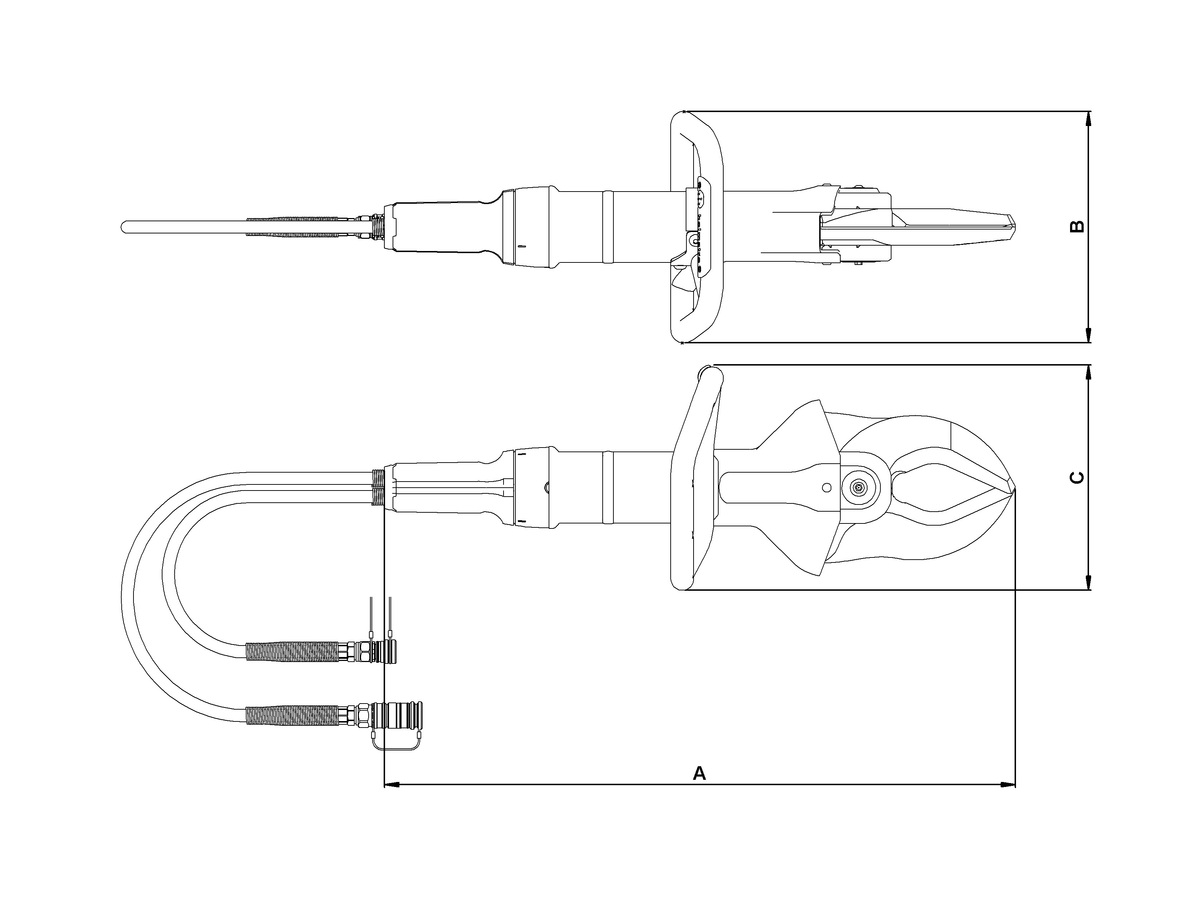 The HMC050A30 cutter is suitable for a variety of industrial cutting applications, e.g., car recycling or dismantling, demolition tasks, and metal/scrap recycling.