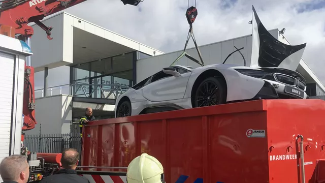 Immersing an electric vehicle in water to extinguish the battery. Photo: Brandweer Nederland