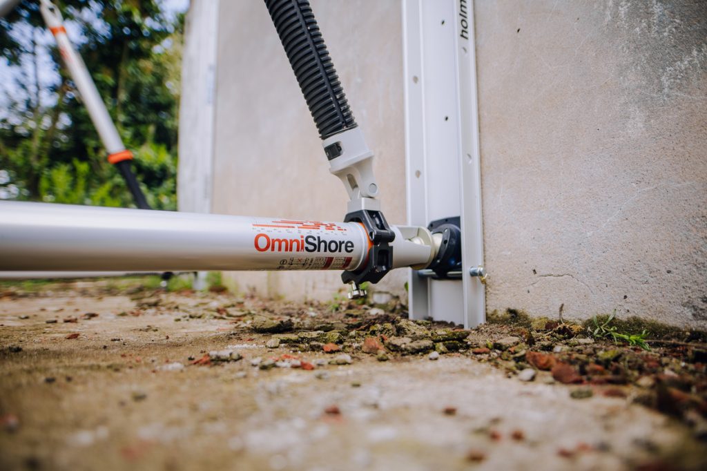 OmniShore Swivel Base for support against angled or tilting surfaces. Maximum angle 65 degrees. With nailing holes for fastening the base.