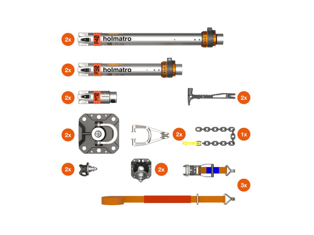 OmniLock set voor voertuigstabilisatie en en eenvoudige verticale stutten. Met uitbreidingssets ook geschikt voor heffen en hoogteankerpunten. Met het gepatenteerde OmniLock systeem kun je een last in beide richtingen automatisch volgen en zekeren.