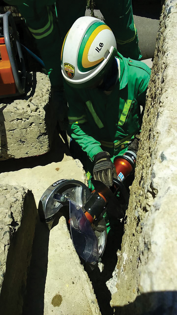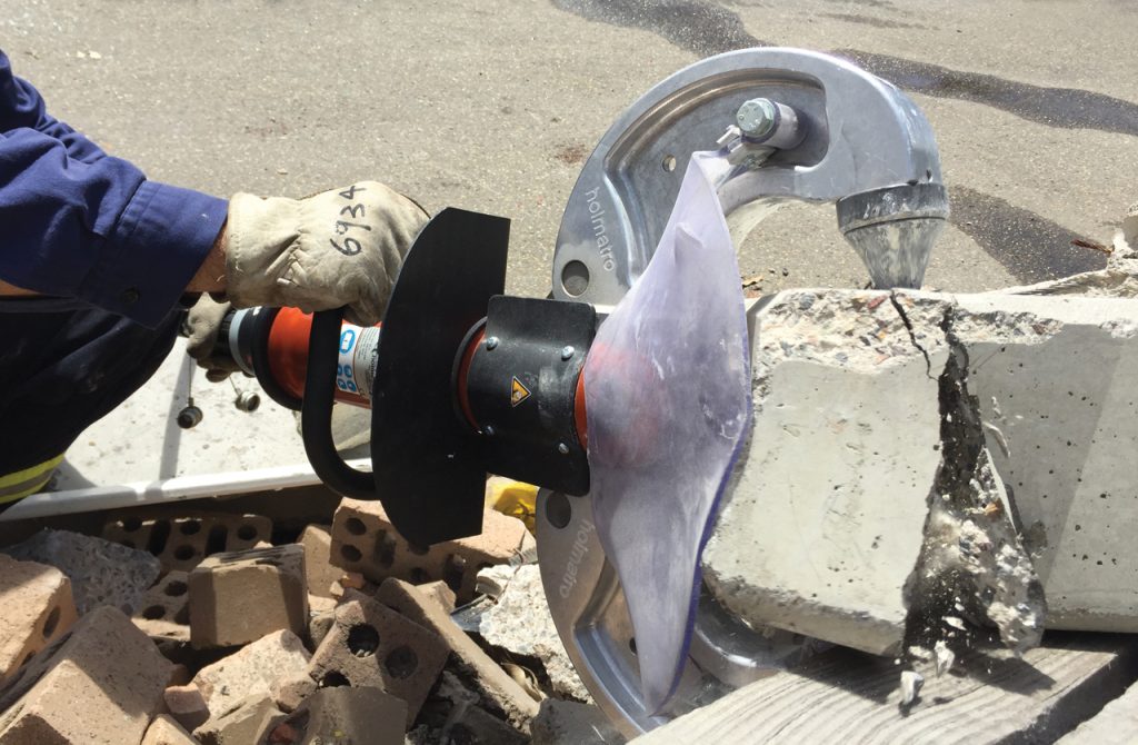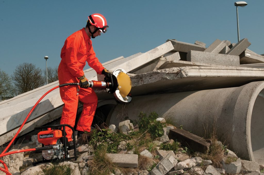 Betoncrusher voor het snel wegbreken van grote, dikke stukken beton van ingestorte bouwwerken. Compleet vernieuwd model: lichter, compacter en met een grotere breekkracht.
