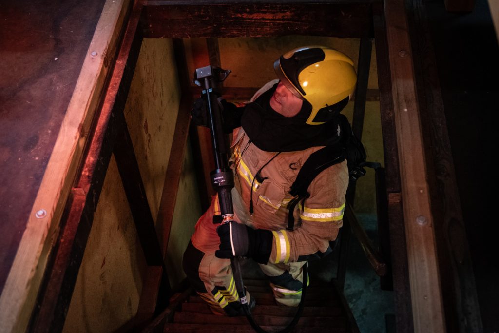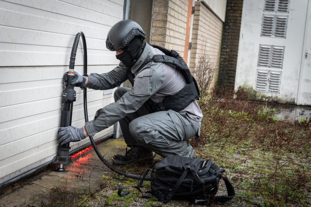 - De teen is in een hoek van 90 graden op het gereedschap bevestigd, zodat je niet recht voor de deur hoeft te staan om het gereedschap te bedienen. Je kunt op een veilige afstand naast de deur werken