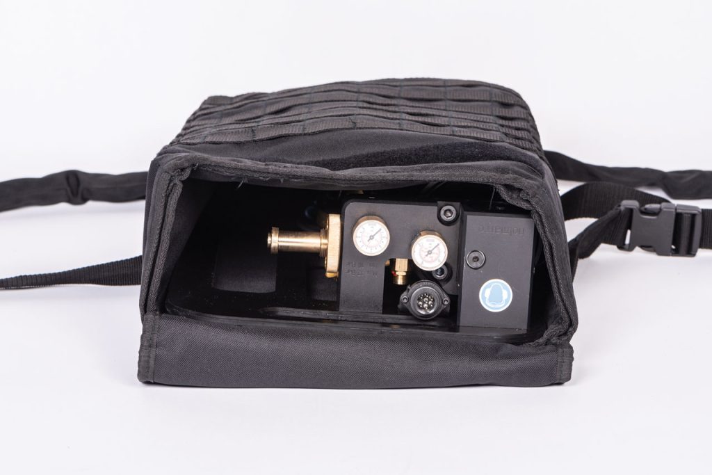 - Met PALS webbing voor bevestiging van extra gereedschap (bijv. draagtas met draadloze ontvanger of extra luchtfles)