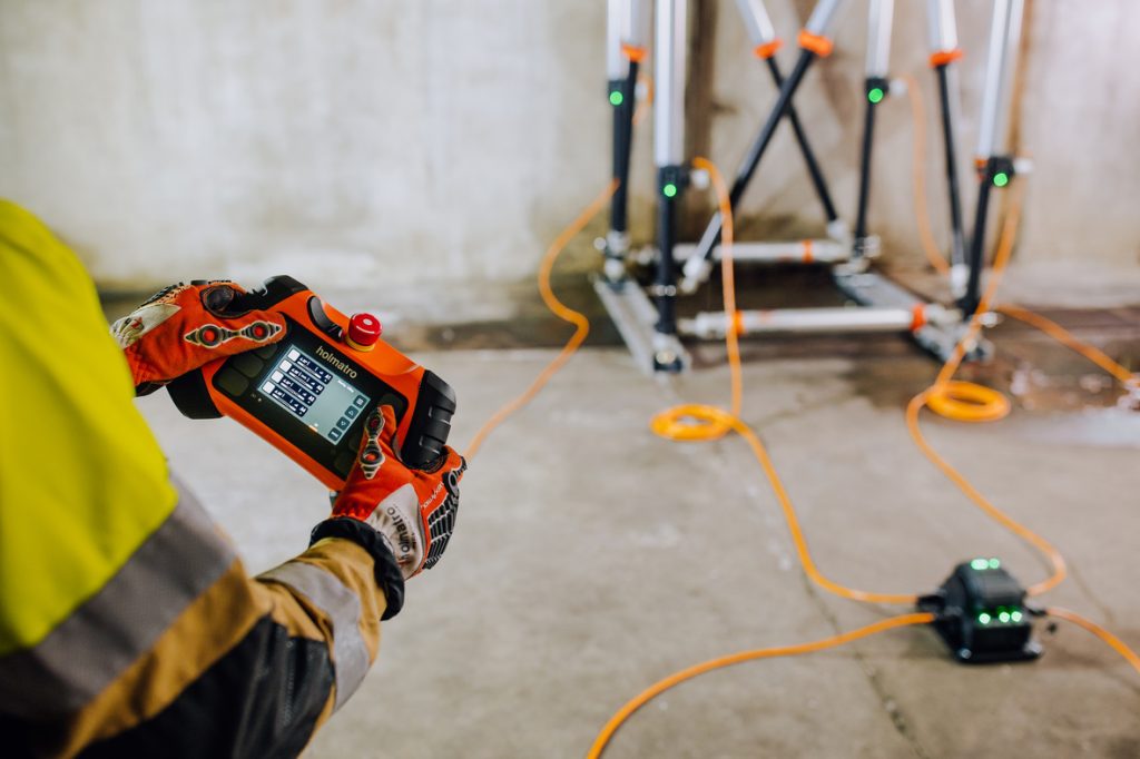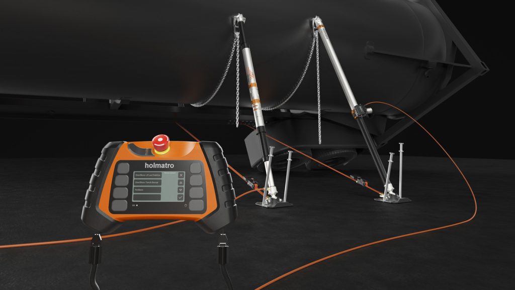- Niemand hoeft zich in de buurt van een bewegende last te bevinden – Monitor en bedien de OmniLock stutten op afstand