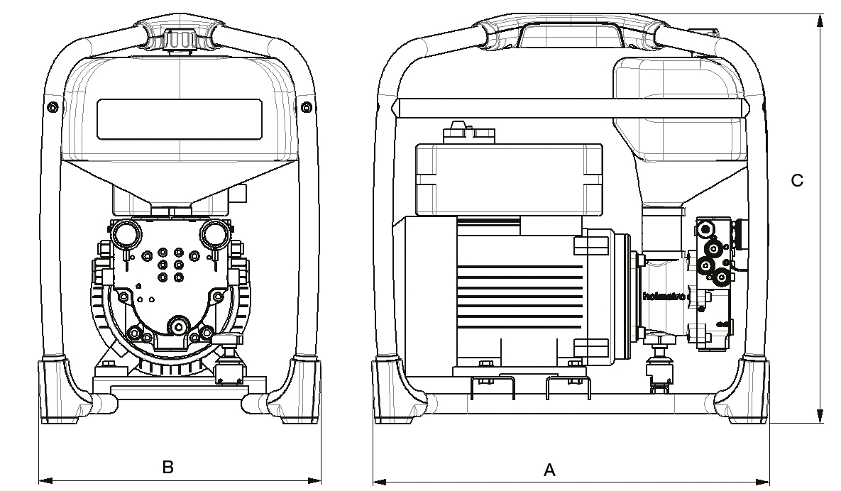 - Voor een snelle en eenvoudige controle van het oliepeil vanaf de buitenkant van de pomp