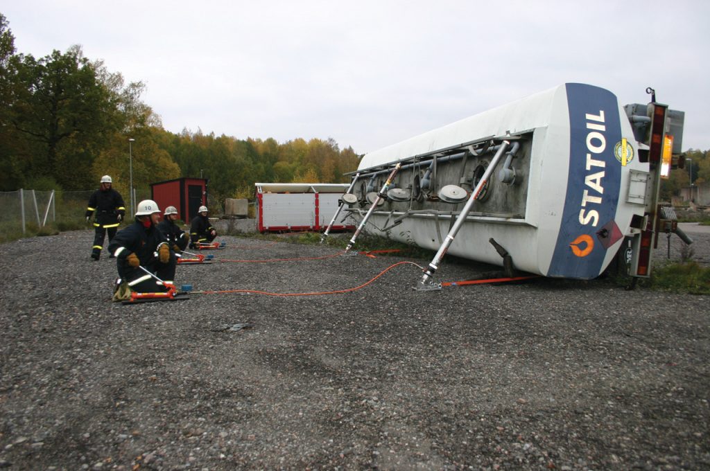 Heeft plaats voor 3 tegen elkaar steunende kantelkoppen en de bevestiging van 3 spanbanden waarmee een stabiele driehoek kan worden gecreeërd.