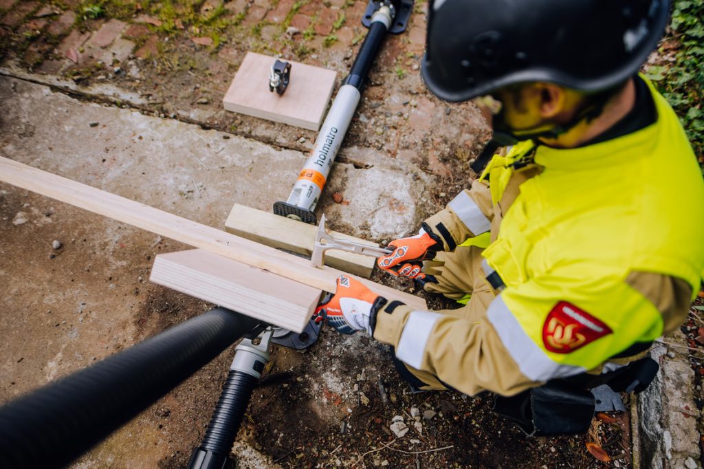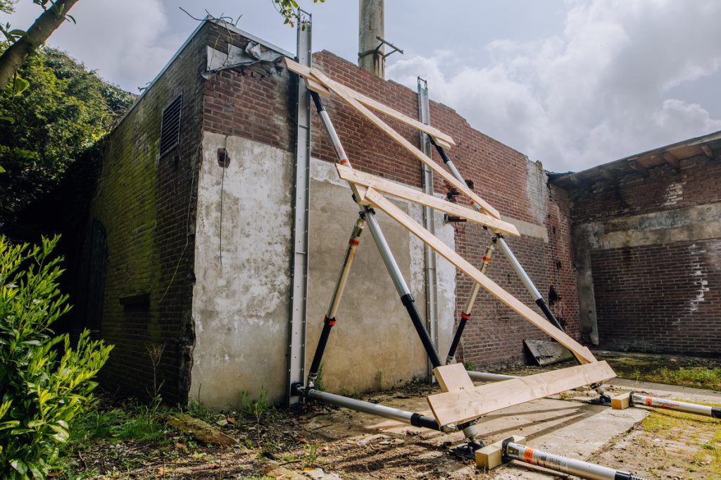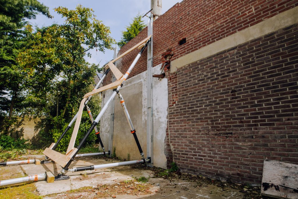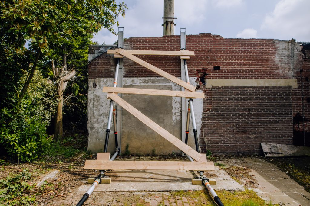 - Bevestig eenvoudig de klem van een spijkerplaat aan een stut en spijker balken vast in het hout