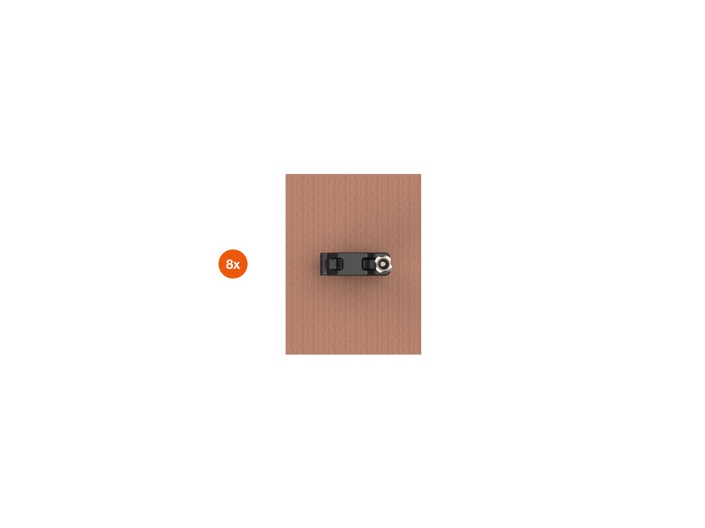 Set met OmniShore spijkerplaten voor het maken van houten schoren. Om stabiliteit toe te voegen en beweging te voorkomen in opstellingen zoals rakers en vierkante stutconstructies.