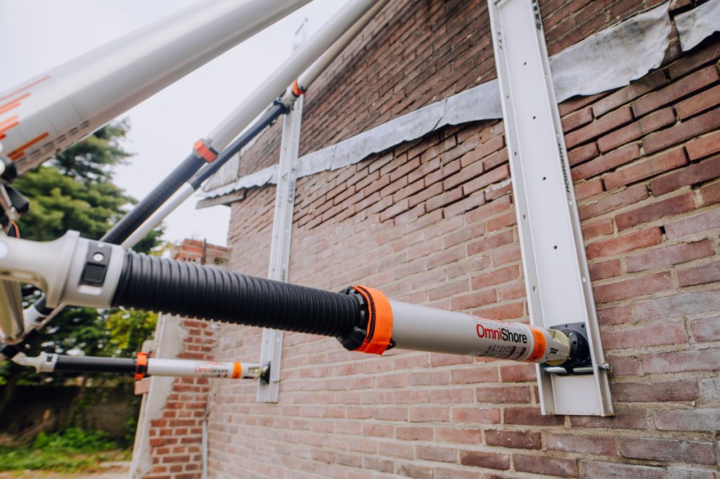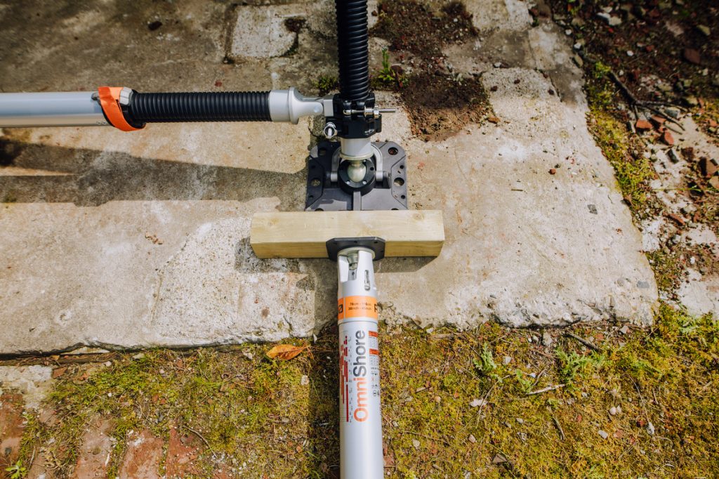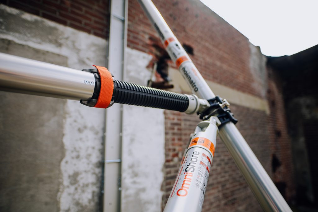 Gepatenteerde OmniShore trekbegrenzer om van een stut een schoor te maken. De trekbegrenzer zet de borgmoer vast aan de stut, waardoor deze bestand is tegen trekkrachten en plotselinge onbedoelde bewegingen.