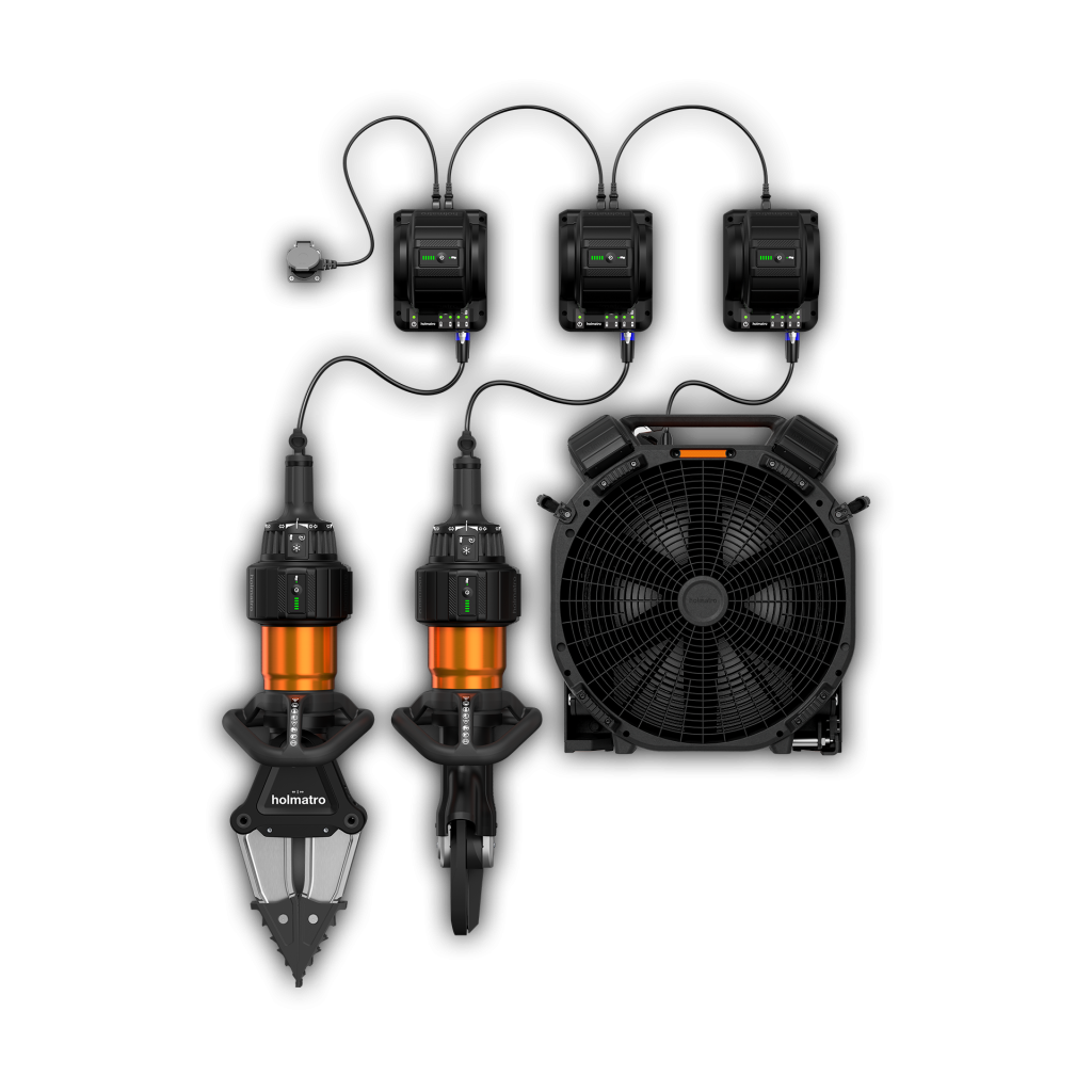 Our PPV is powered by two Holmatro batteries that keep you going. Part of Holmatro’s intelligent battery platform that also powers Pentheon tools, OmniLock struts, the Battery Pump and future solutions.