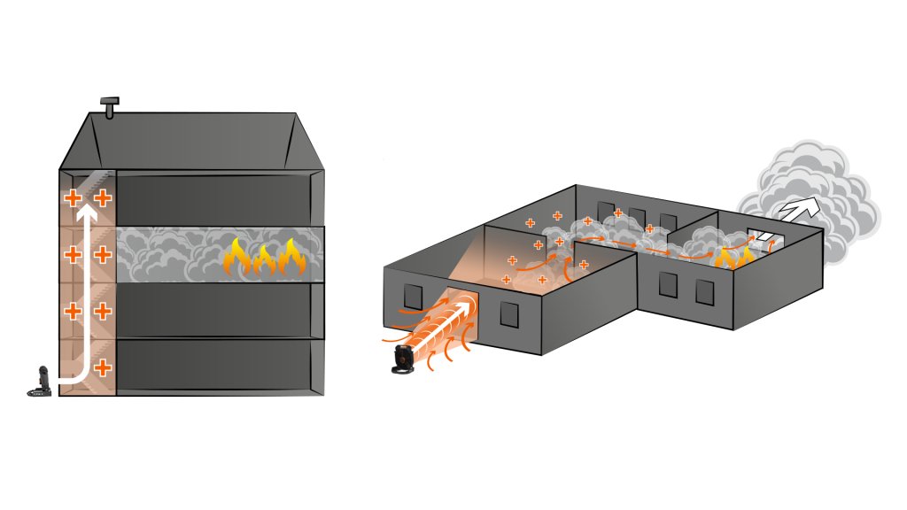 Overpressure drives air deep into structures, overcomes obstacles and headwinds, and keeps escape routes pressurized to prevent smoke from coming in.