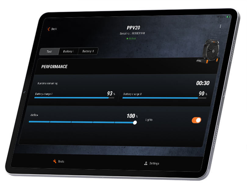 - Five preset airflow levels on the PPV, or stepless control via MyHolmatro app