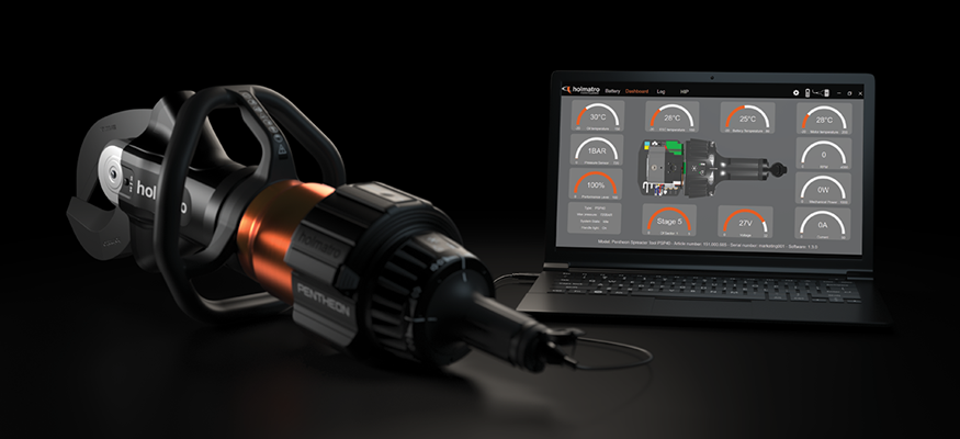 Dedicated to our Pentheon Rescue tools, we supply advanced Holmatro Diagnostic Software to our dealers, enabling them to monitor and optimize the performance of Pentheon (Next-Gen) tools. End-users with Pentheon (Next-Gen) can see all battery information in one single overview. This makes battery management for your Pentheon series extremely easy! Within the overview, you can see the state of health of your battery, as well as the state of charge, performed cycles and software version.